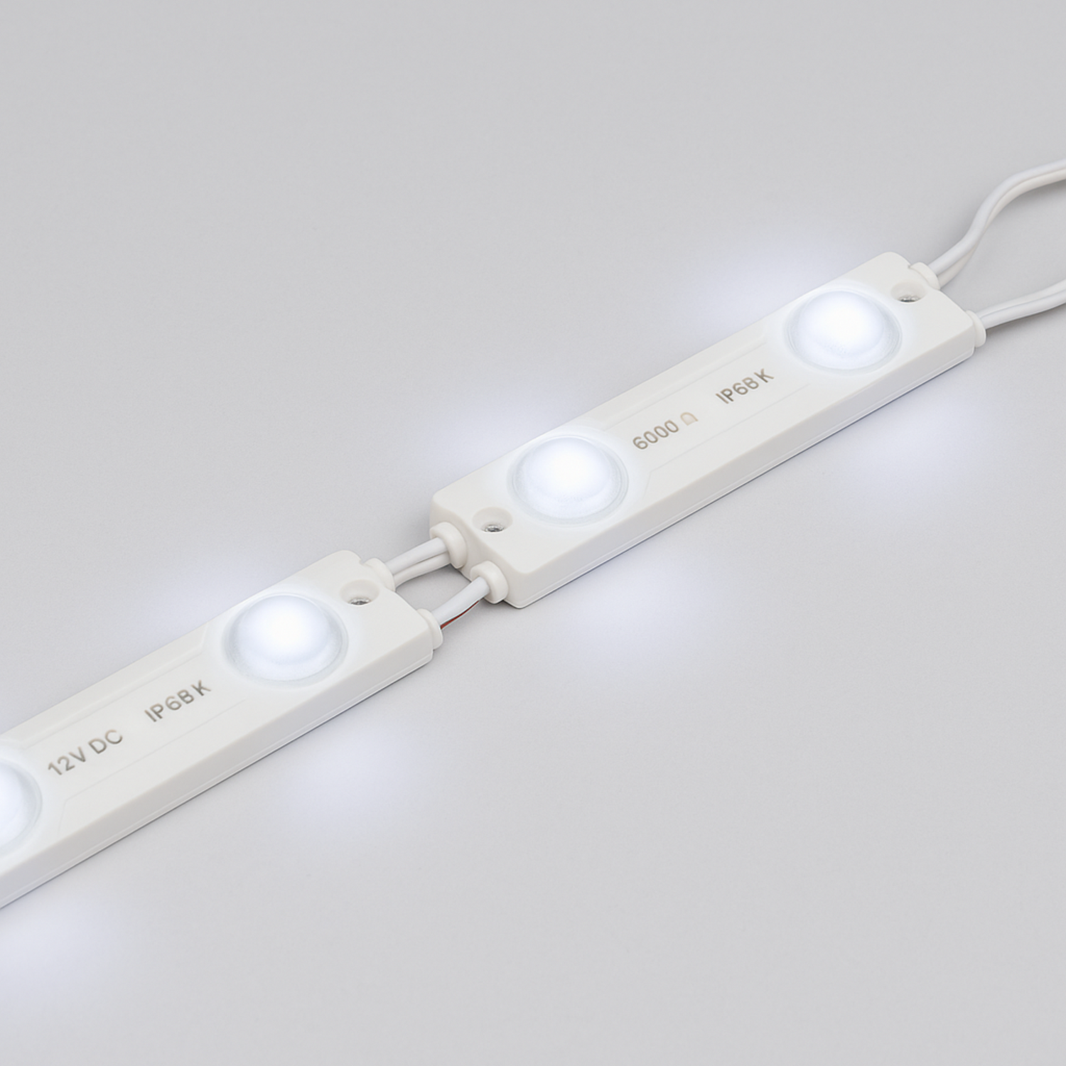 Valaisuratkaisujen taustalle tarjoamme myös erilliset LED-moduulit tuotteina, jotka mahdollistavat tasaisen ja tehokkaan valaistuksen omiin rakenteisiin tai valomainosratkaisuihin.