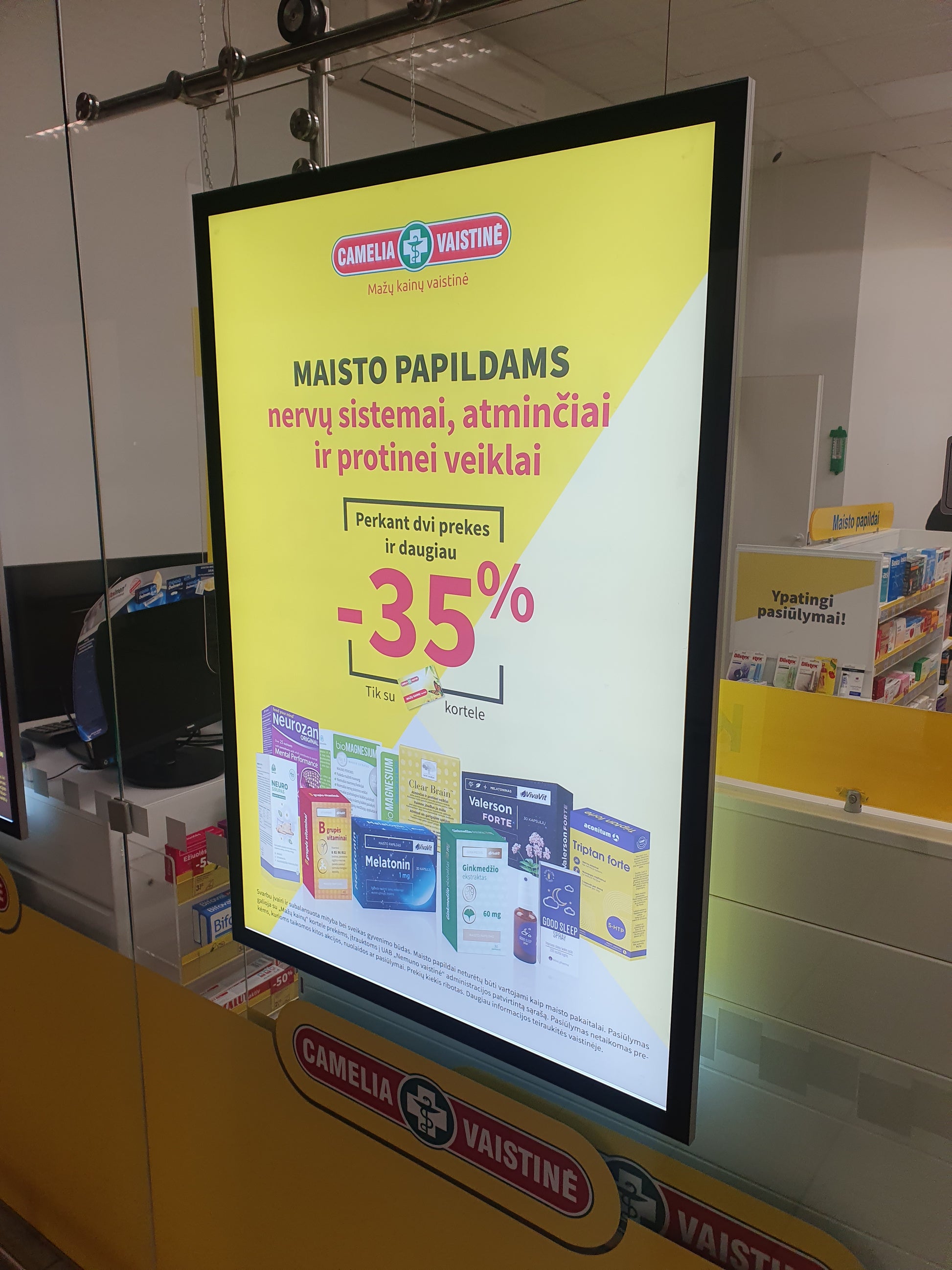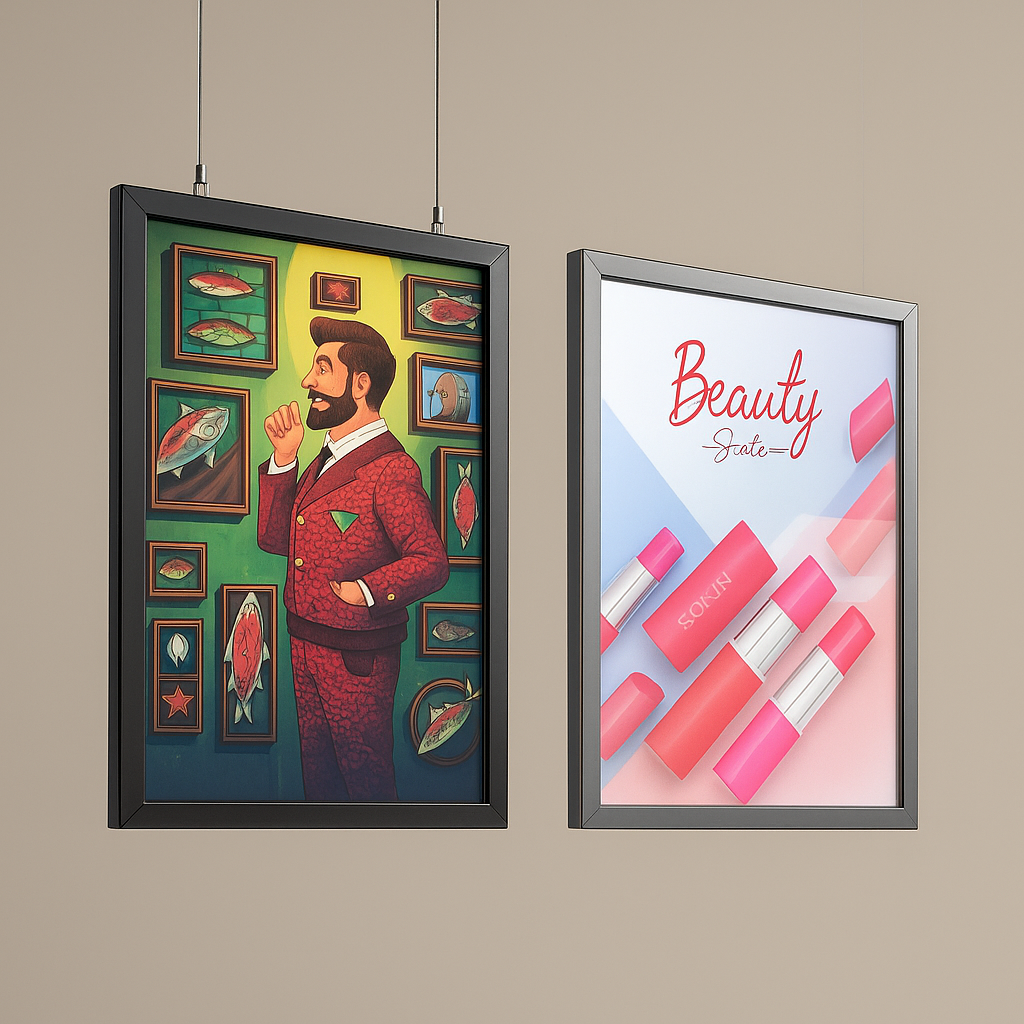 25 mm alumiinirunko tekee tuotteesta siistin ja kestävän, mutta silti erittäin ohuen. Snap-kehys molemmilla puolilla mahdollistaa nopeat julisteenvaihdot. Tasainen LED-valaistus näyttää mainoksen selkeästi kaikissa valaistusolosuhteissa.