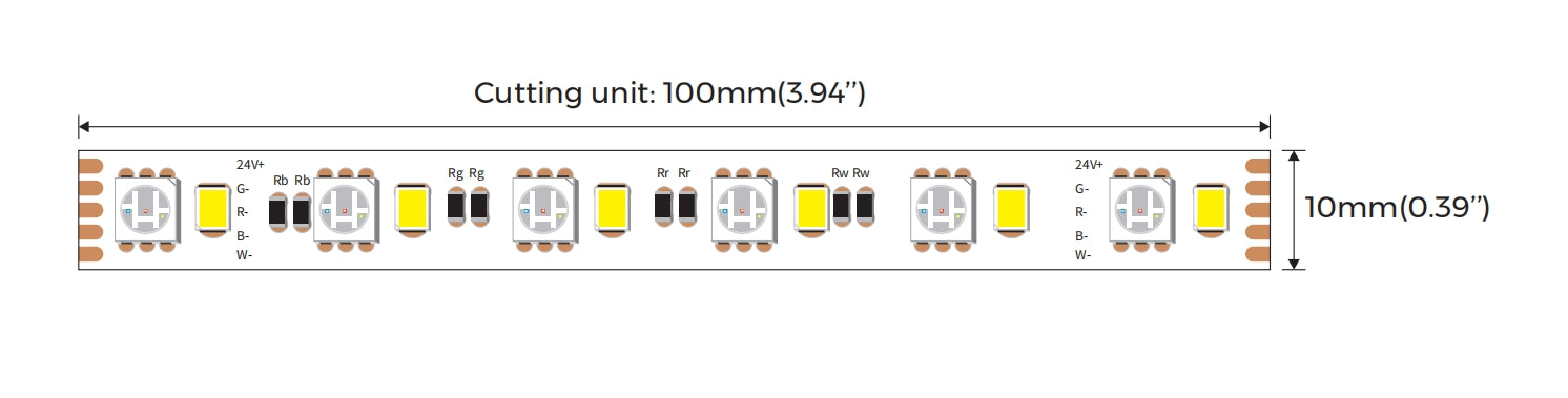 DJ120RGBW-24V-10mm-5m – 24V RGBW LED-nauha, ECO-sarja, 16.8 W/m