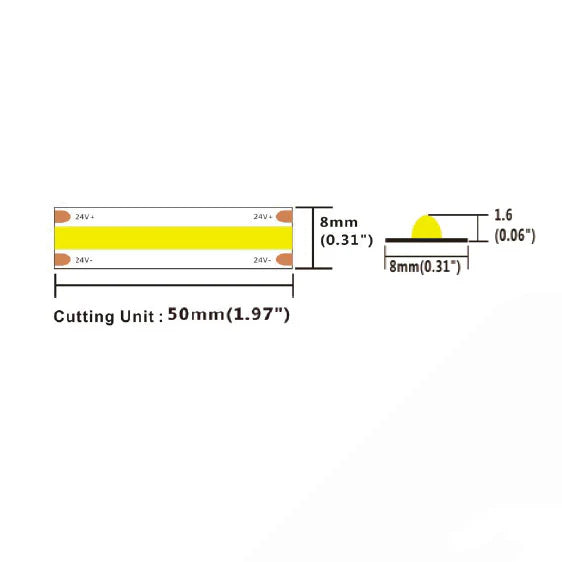 DRF10-24V-8mm-5m – 9.6W/m COB LED-nauha, pisteetön valo, CRI90, IP20